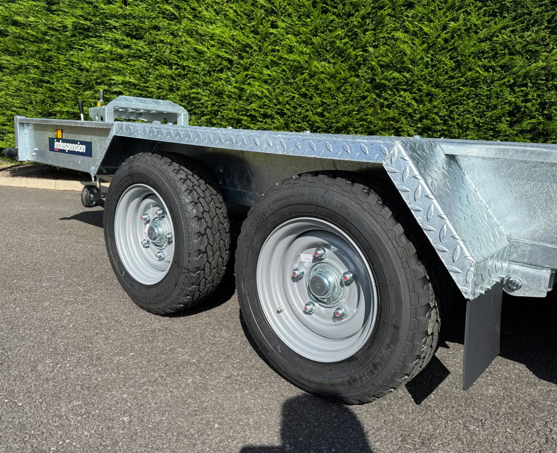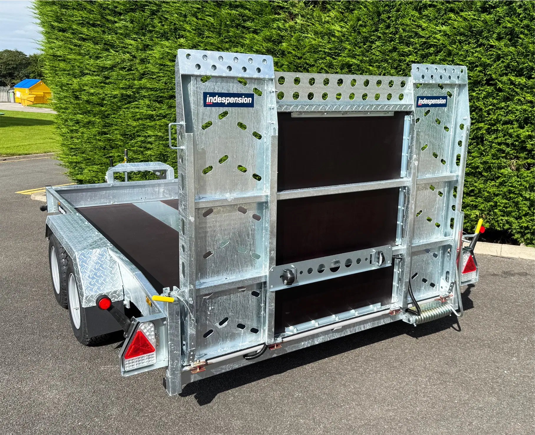 The Indespension AD35126BTS Challenger 50 Beavertail Trailer, a 3.5t plant trailer made in the UK from galvanised steel, redefines durability. With its 12' x 6' dimensions, it exceeds industry standards, delivering outstanding performance in demanding environments.