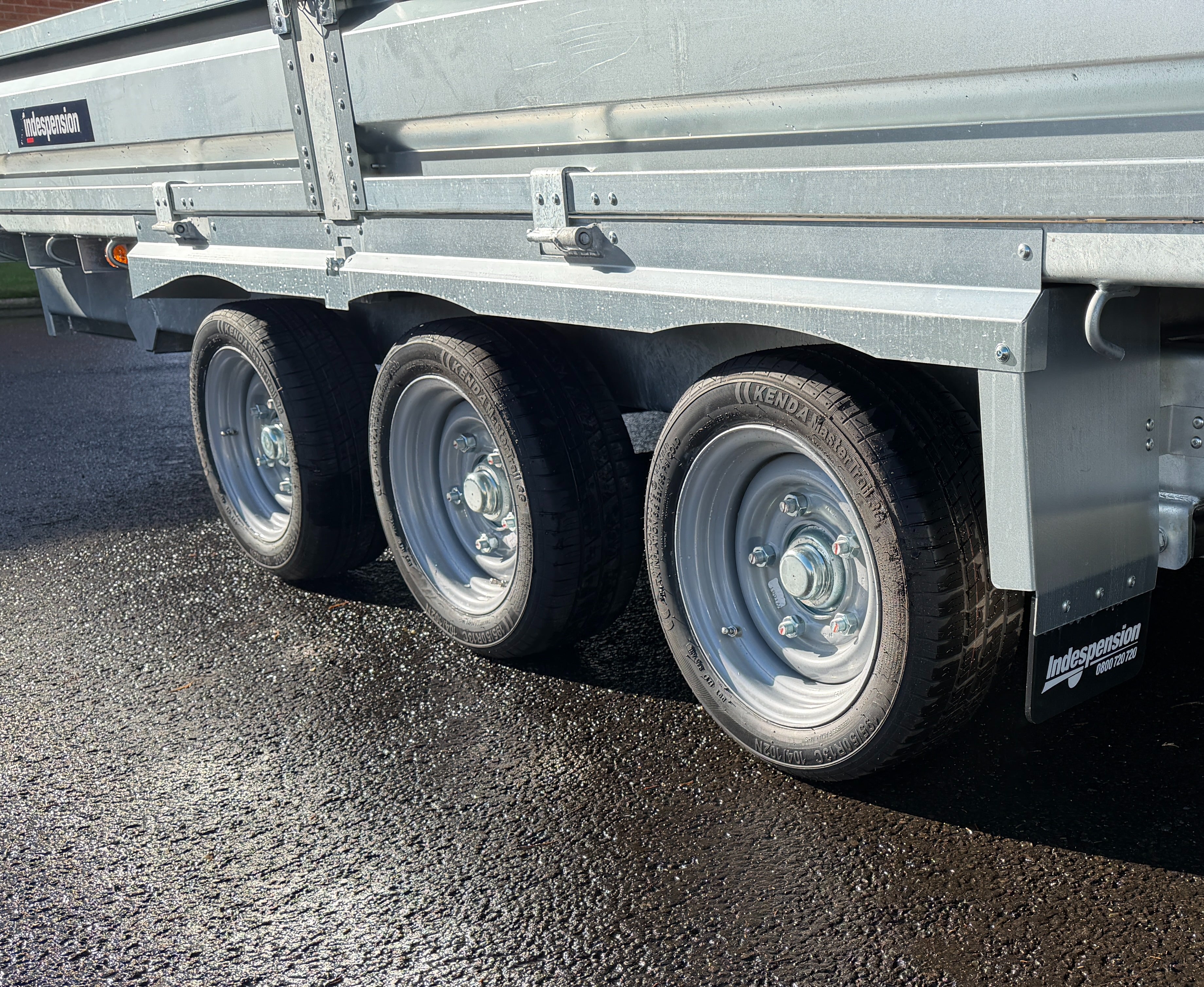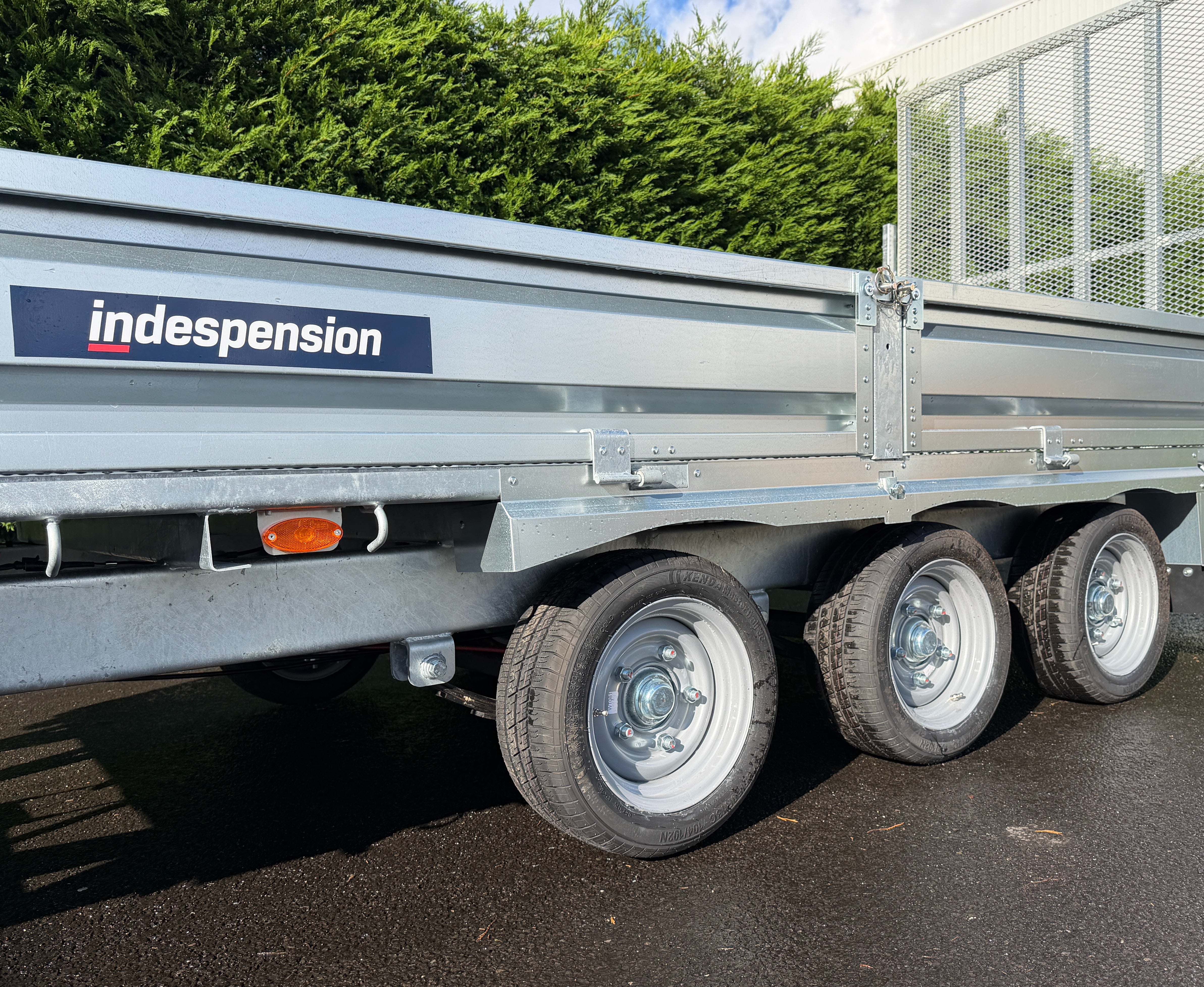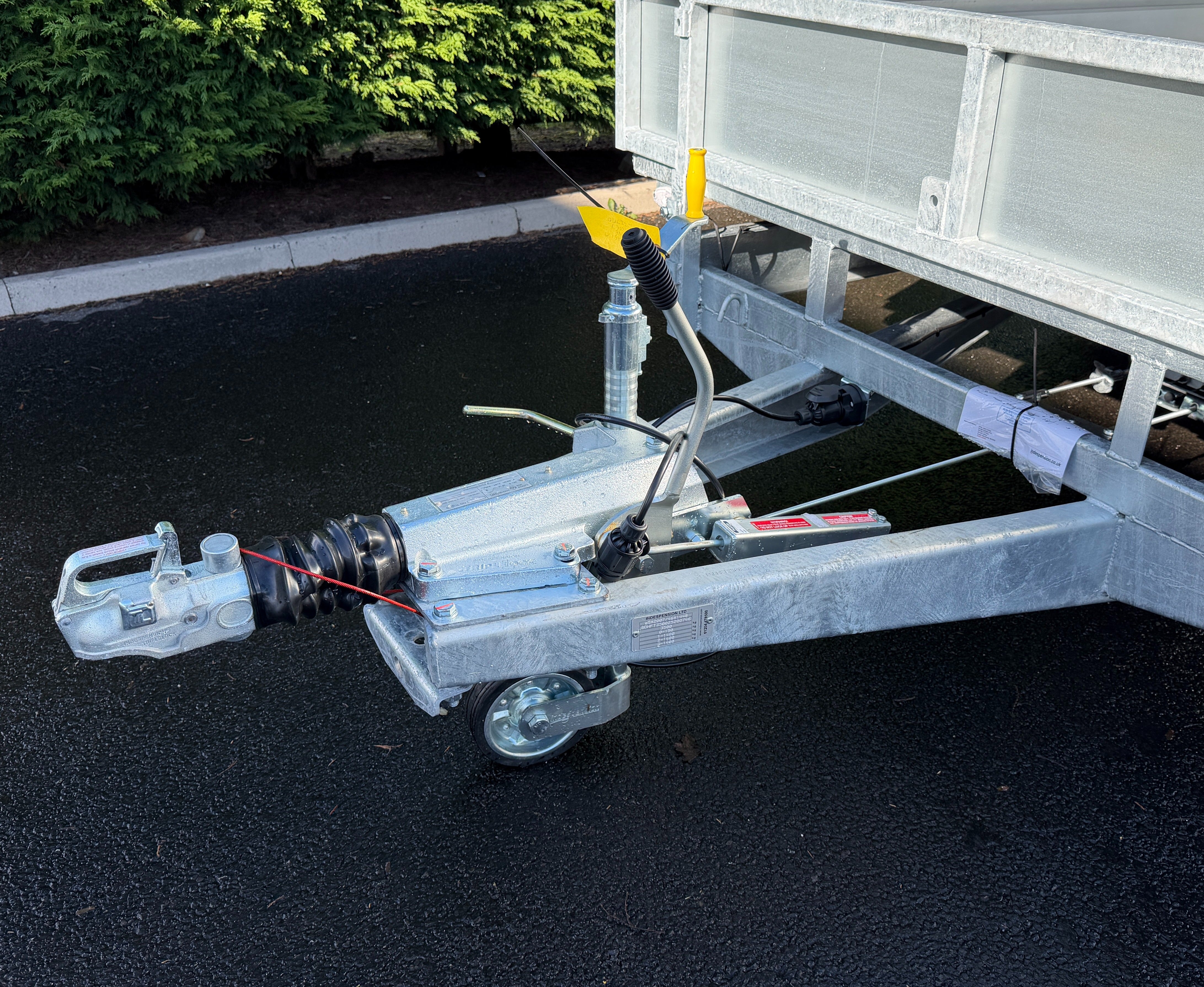 The FTL35166TSD is fitted with 7 leaf spring suspension with full width beam and brushed hangers and Indespension Triple lock 50mm ball coupling as standard. The Triple lock system is constructed of a strong cast iron, zinc plated head and has an integral spring loaded lock. It is also fitted with large boss taper roller bearings.