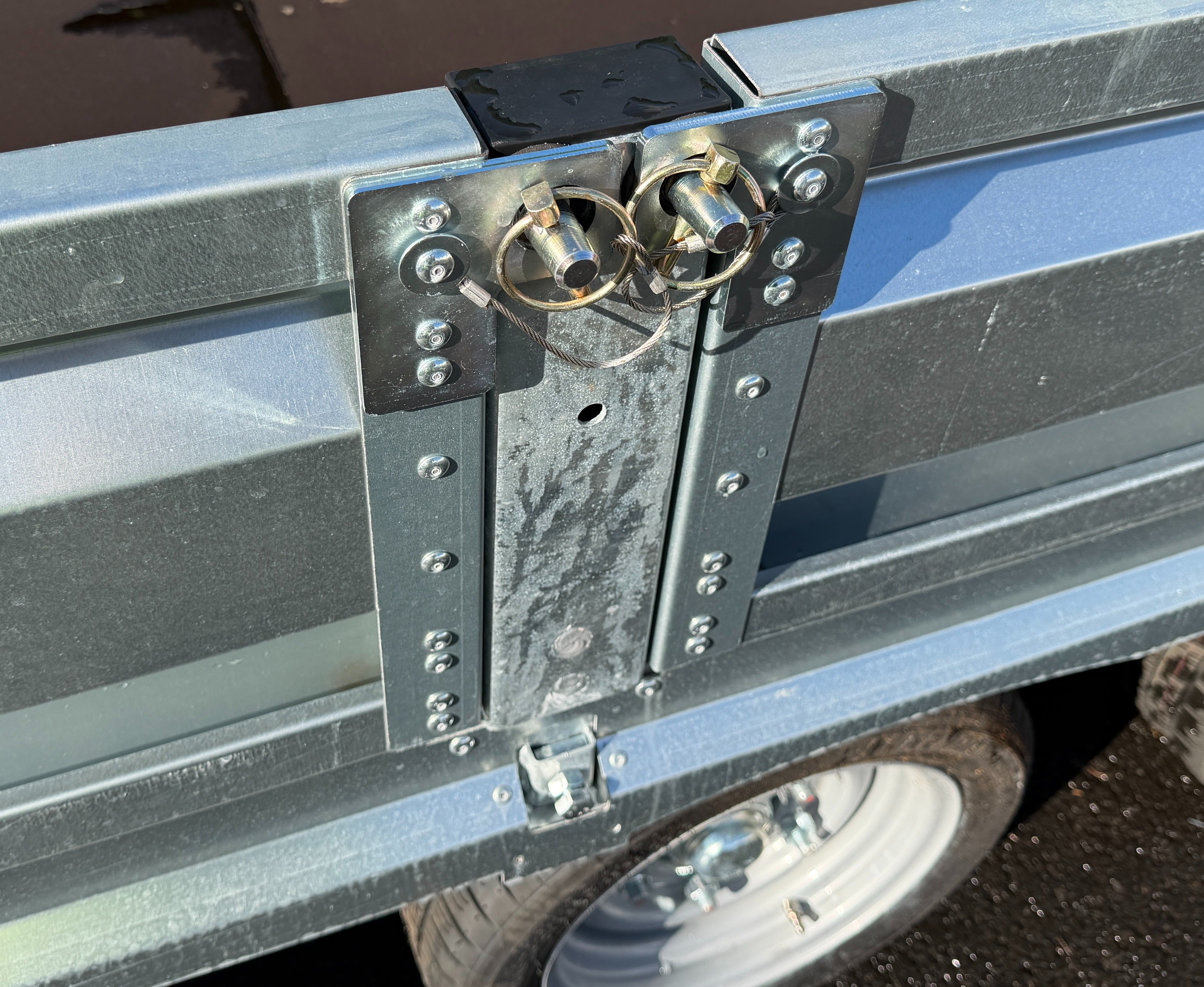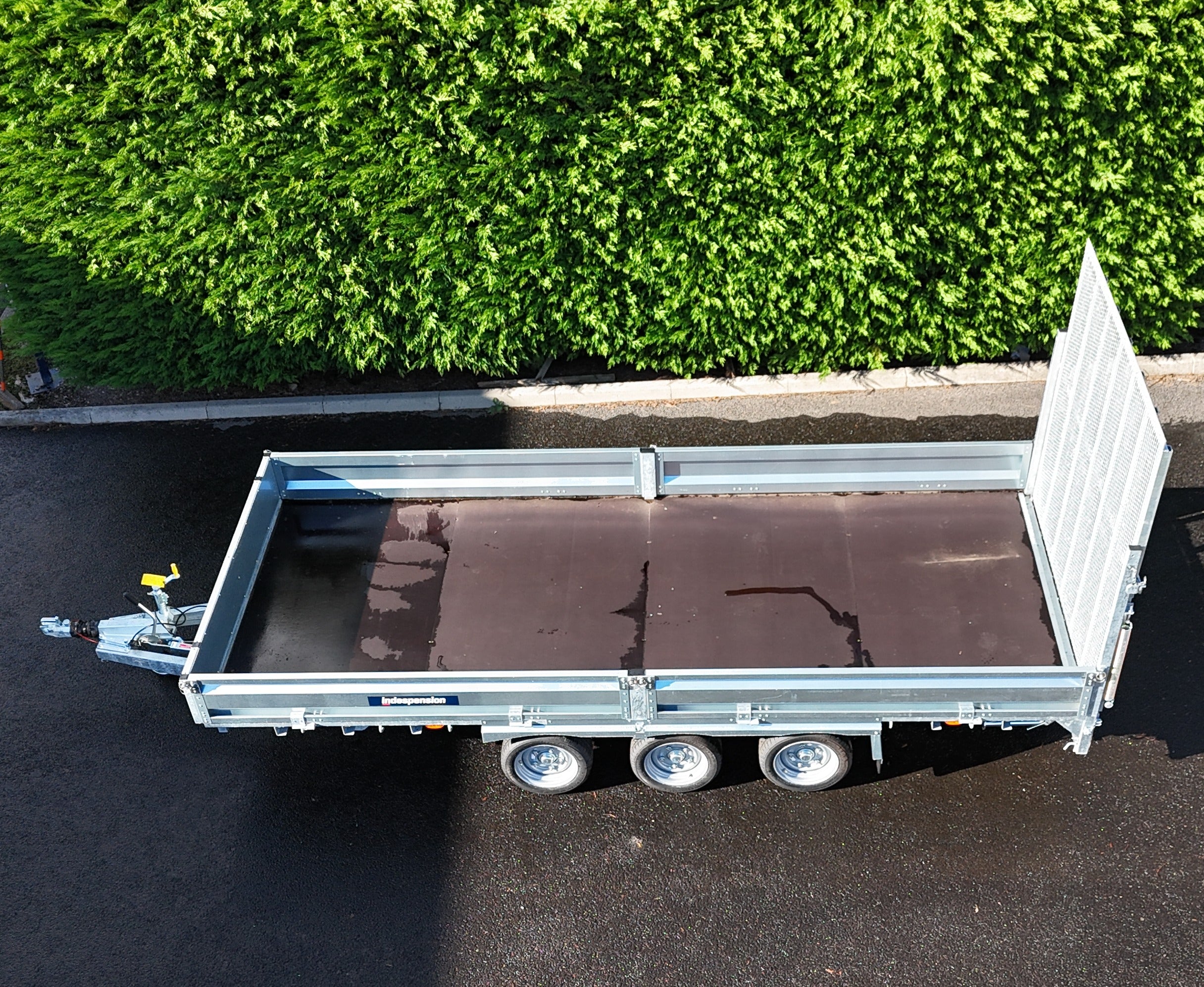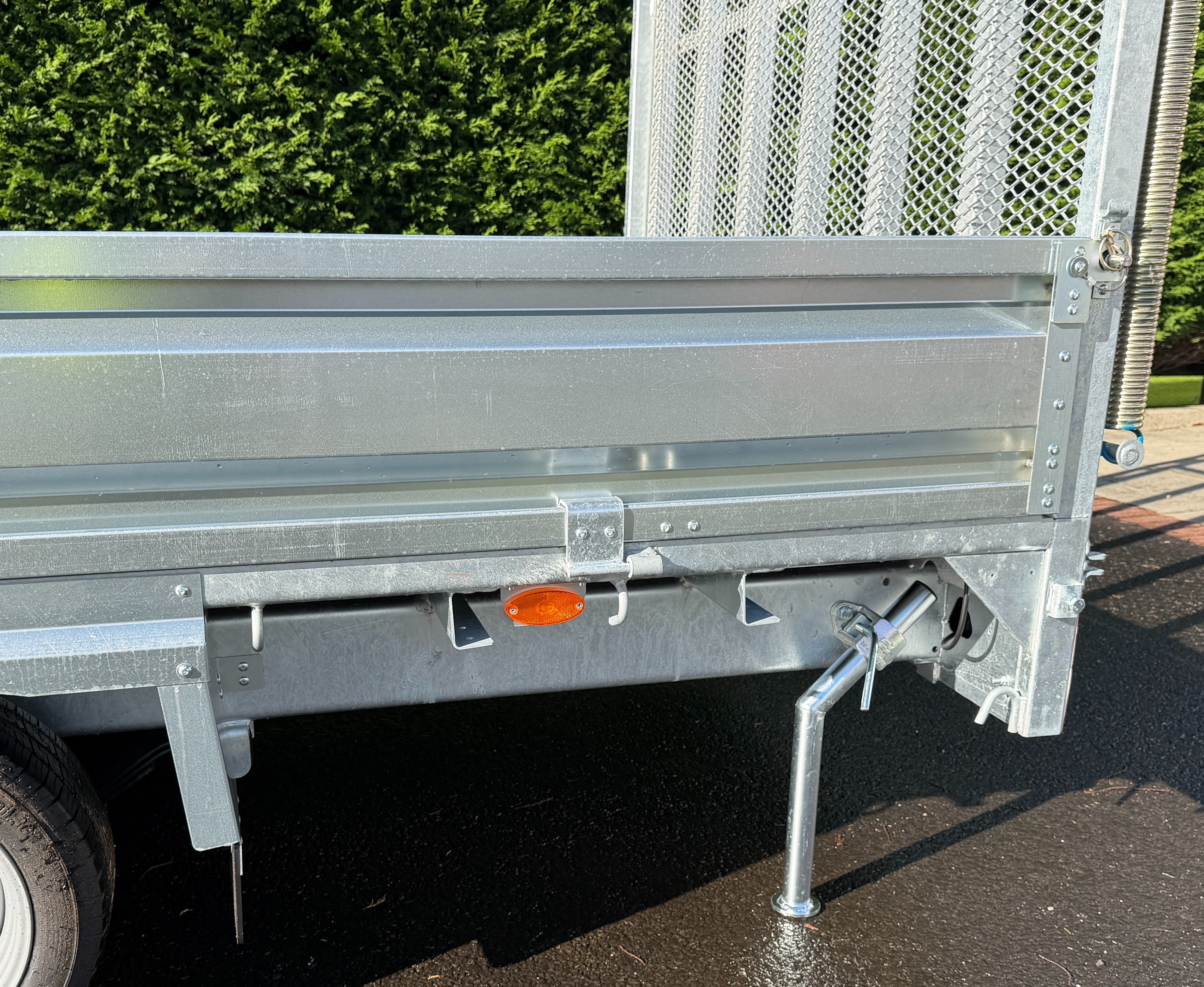 The FTL35166TSD is fitted with 7 leaf spring suspension with full width beam and brushed hangers and Indespension Triple lock 50mm ball coupling as standard. The Triple lock system is constructed of a strong cast iron, zinc plated head and has an integral spring loaded lock. It is also fitted with large boss taper roller bearings.