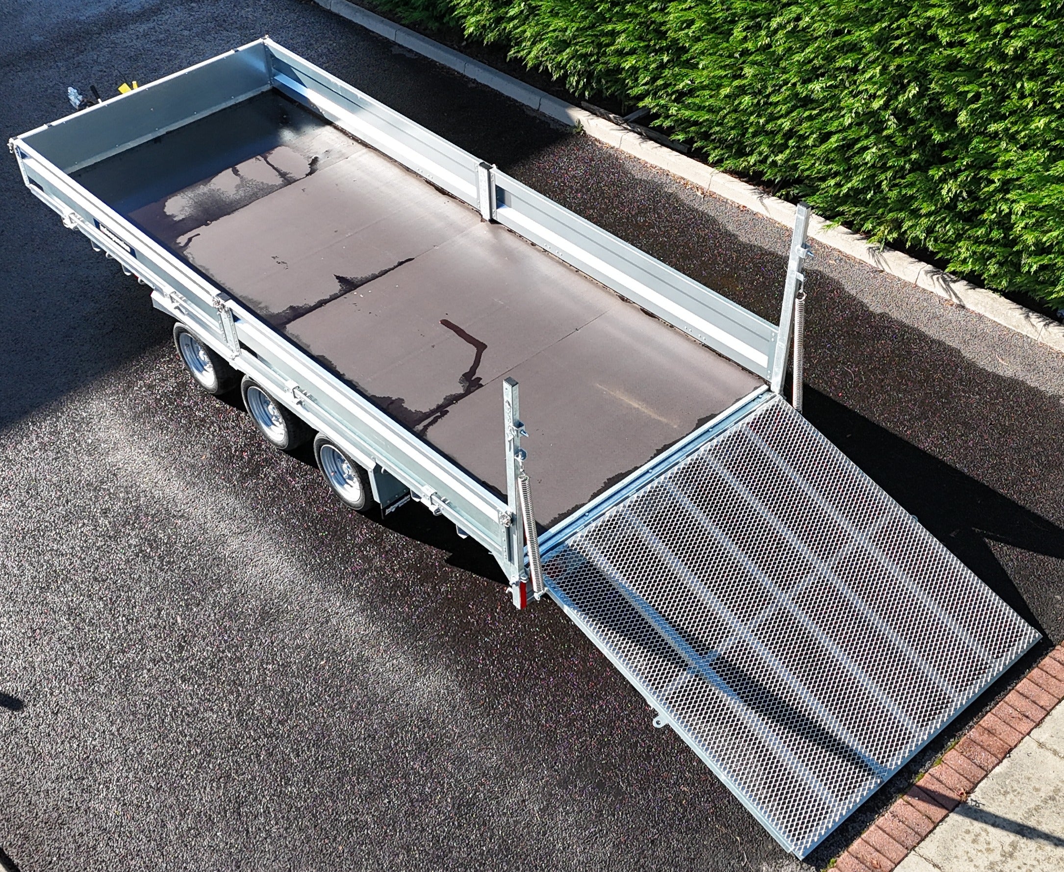 The floor is constructed with 18mm resin coated and patterned thick phenolic plyboard to provide strength, durability and friction for grip. It also has a galvanised steel lip around the edge to prevent loads such as pallets from moving and slipping off bed. Other features included inset rear light cluster and a ramp stowage facility under the trailer body.