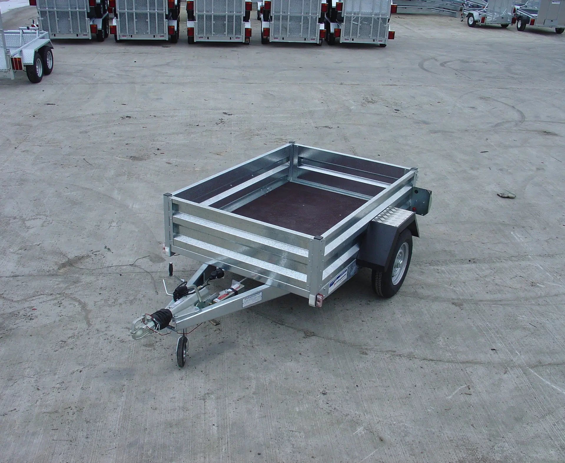 Choose the GT13064 for a braked single axle goods trailer that adheres to British manufacturing standards, crafted from galvanized steel, and designed to handle your cargo with strength and comfort.