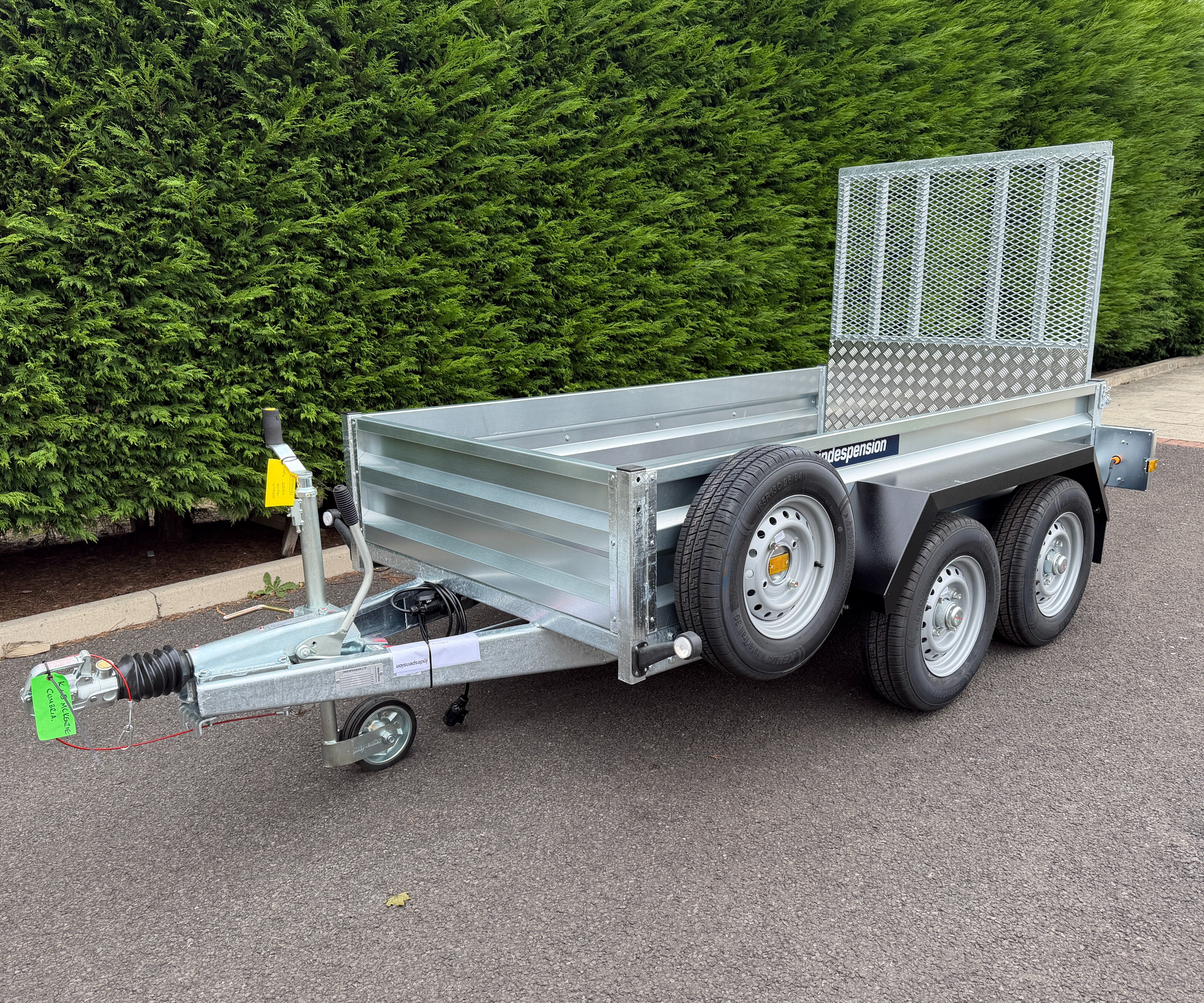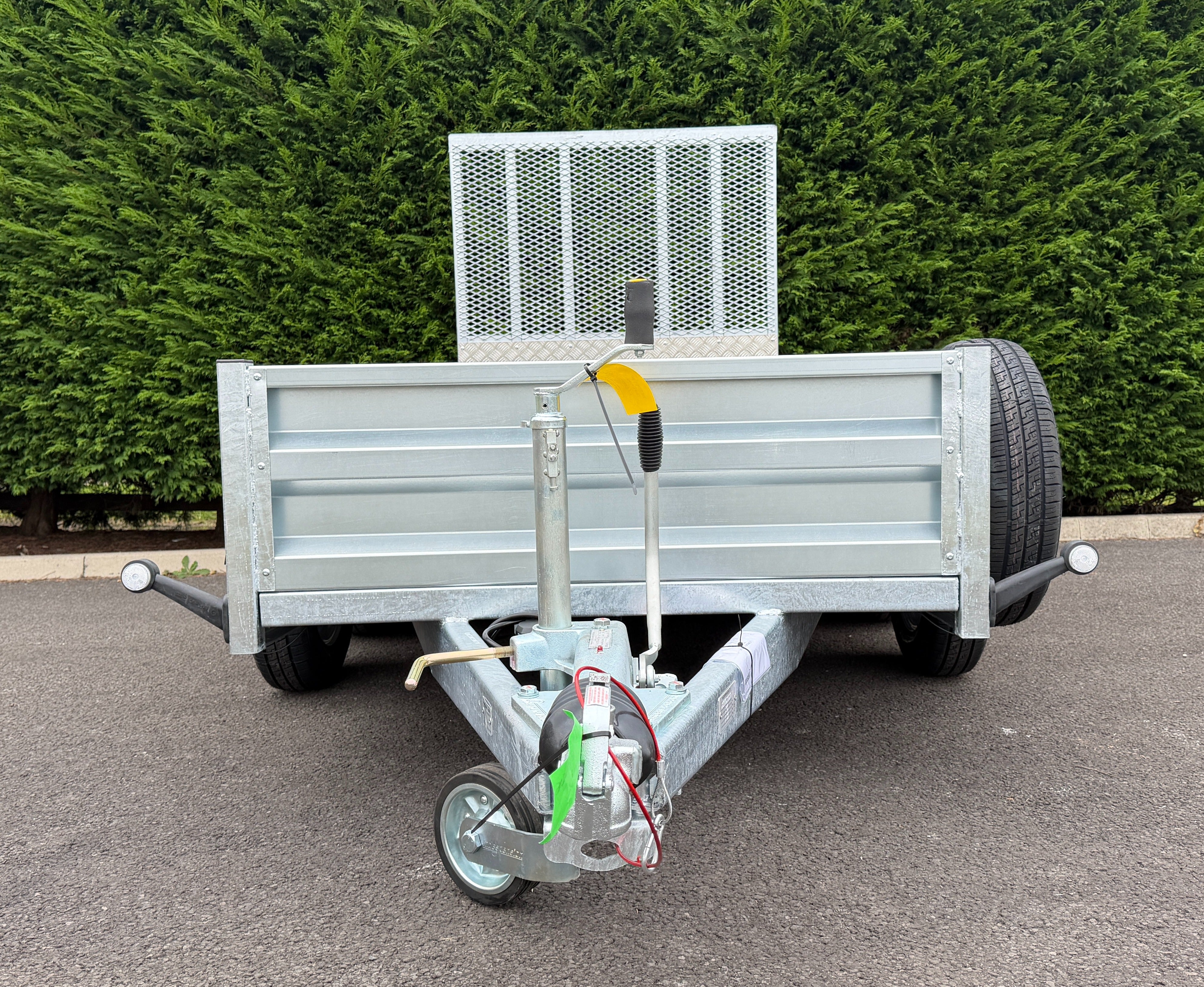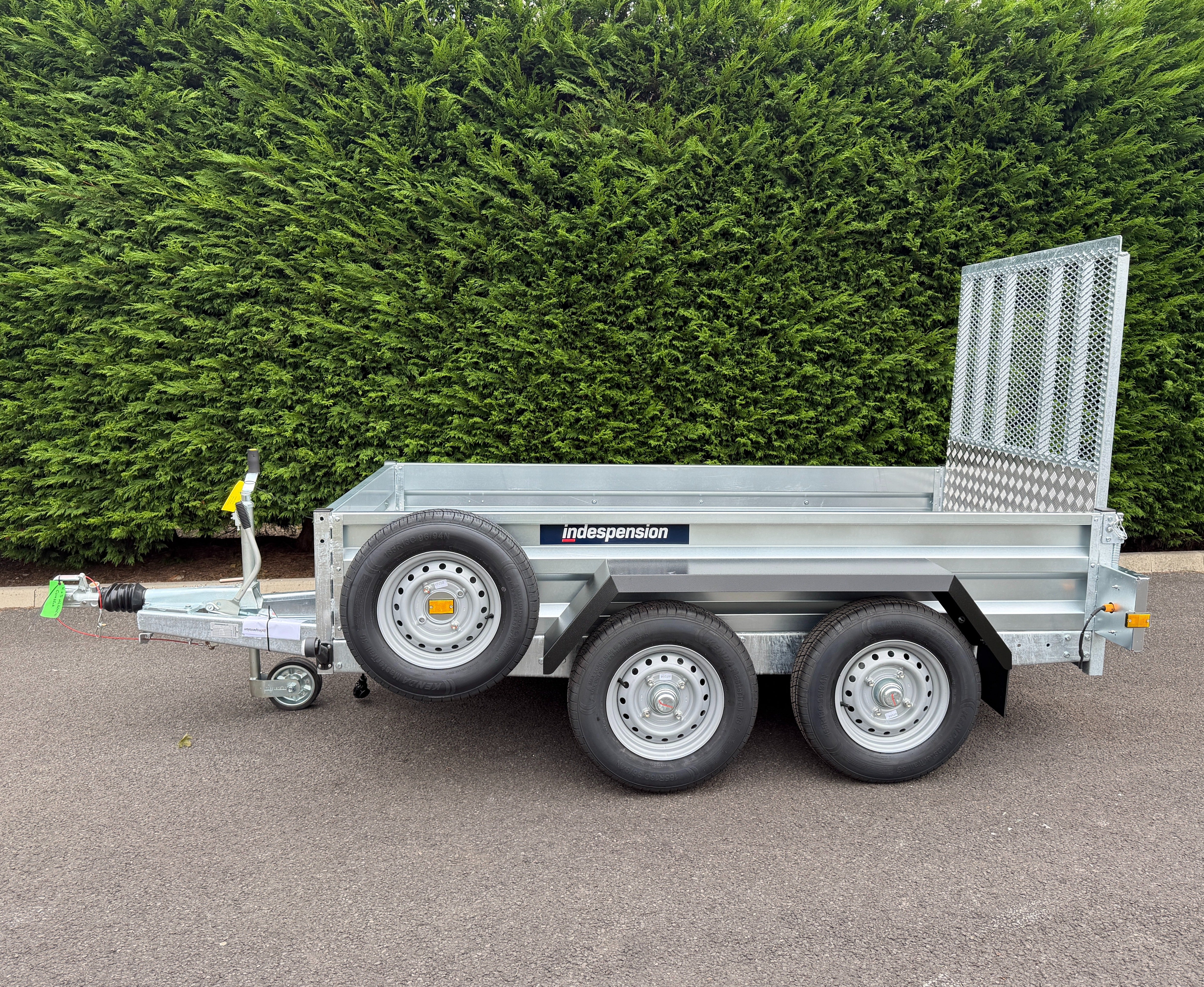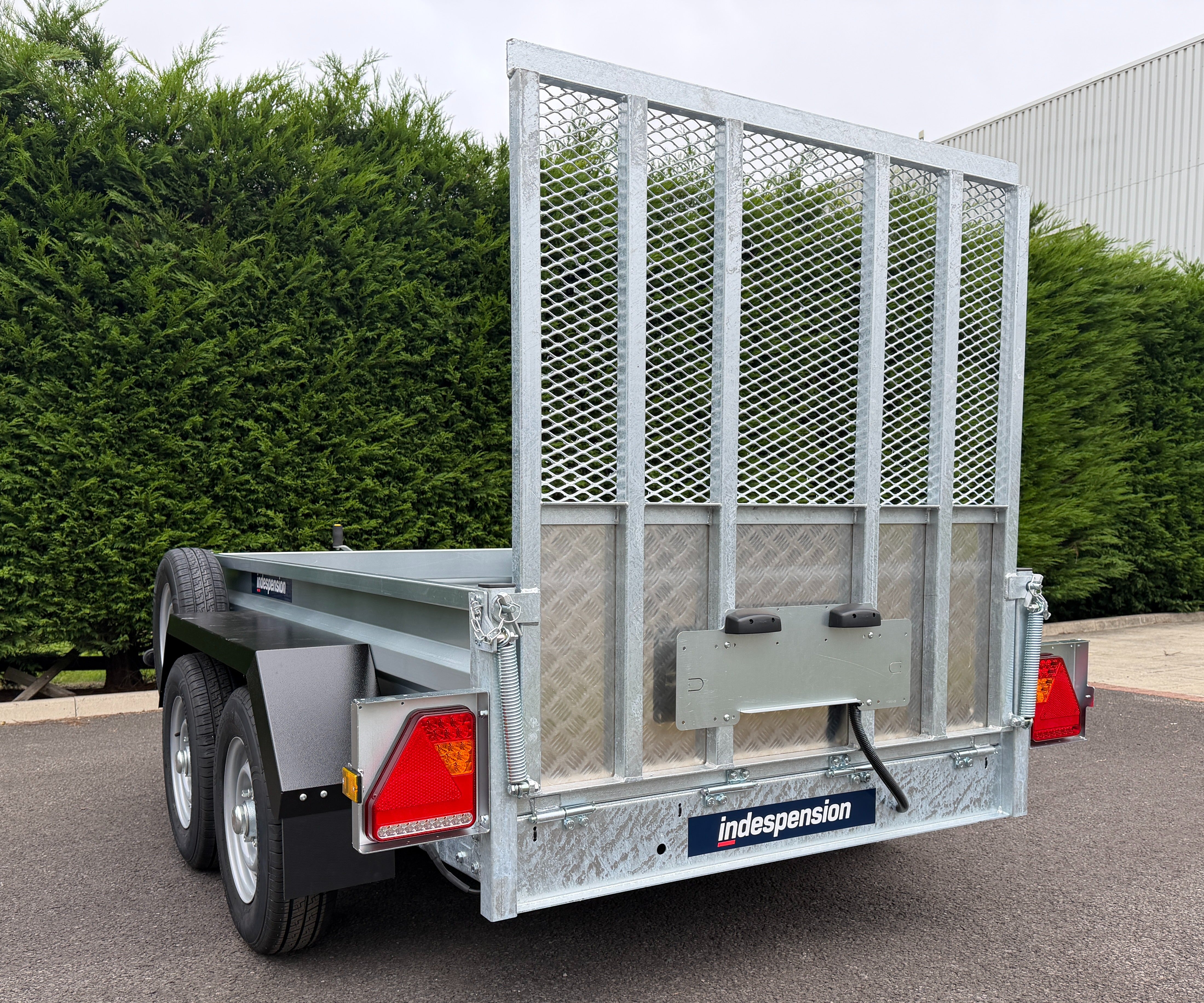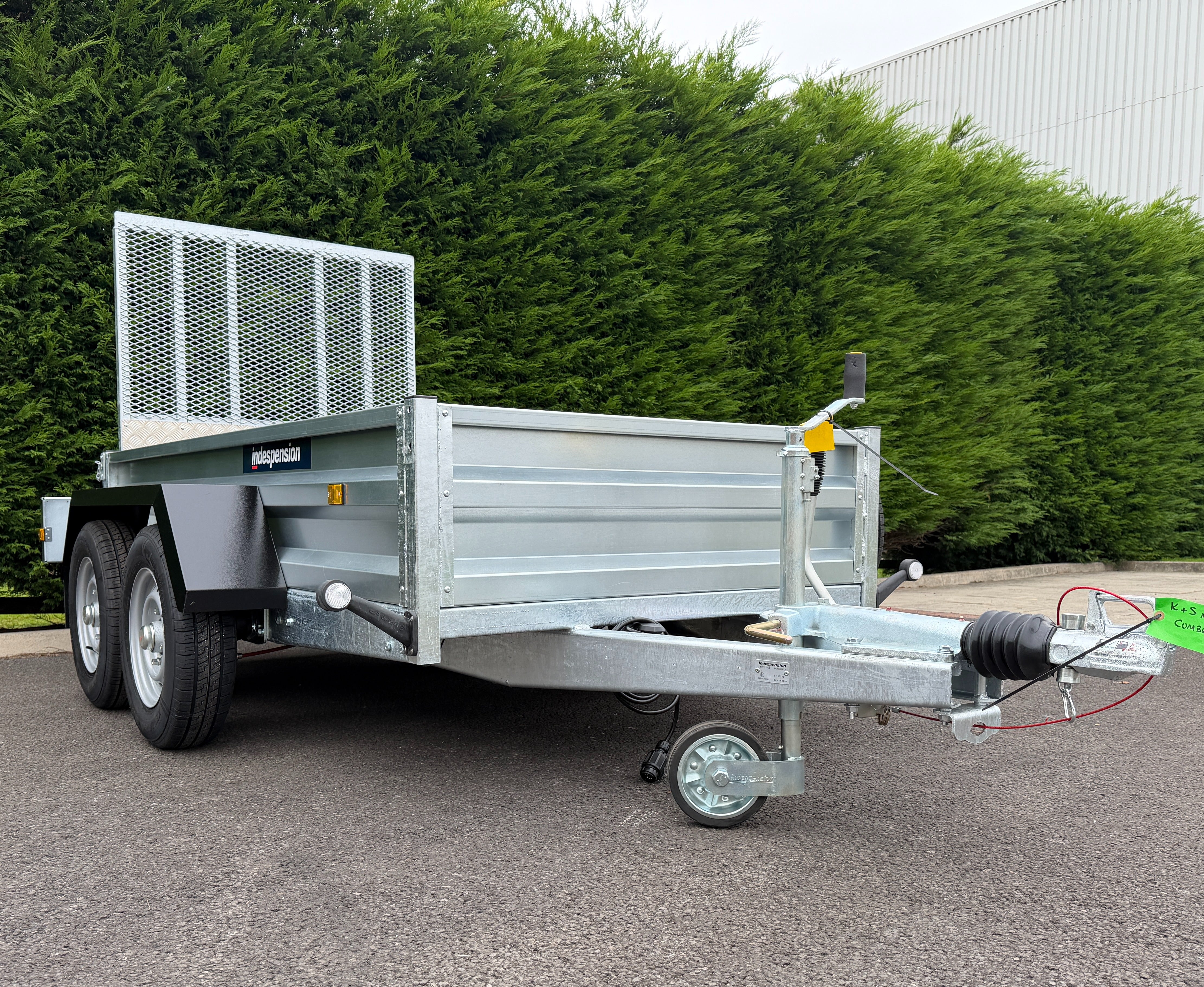 The GT26084R is an impressive braked 8' x 4' twin-axle cargo trailer, boasting a robust gross vehicle weight of 2700Kgs. As part of Indespension's GT range of goods trailers, it's meticulously crafted for strength, meeting British manufacturing standards and featuring a hot-dip galvanised steel chassis.