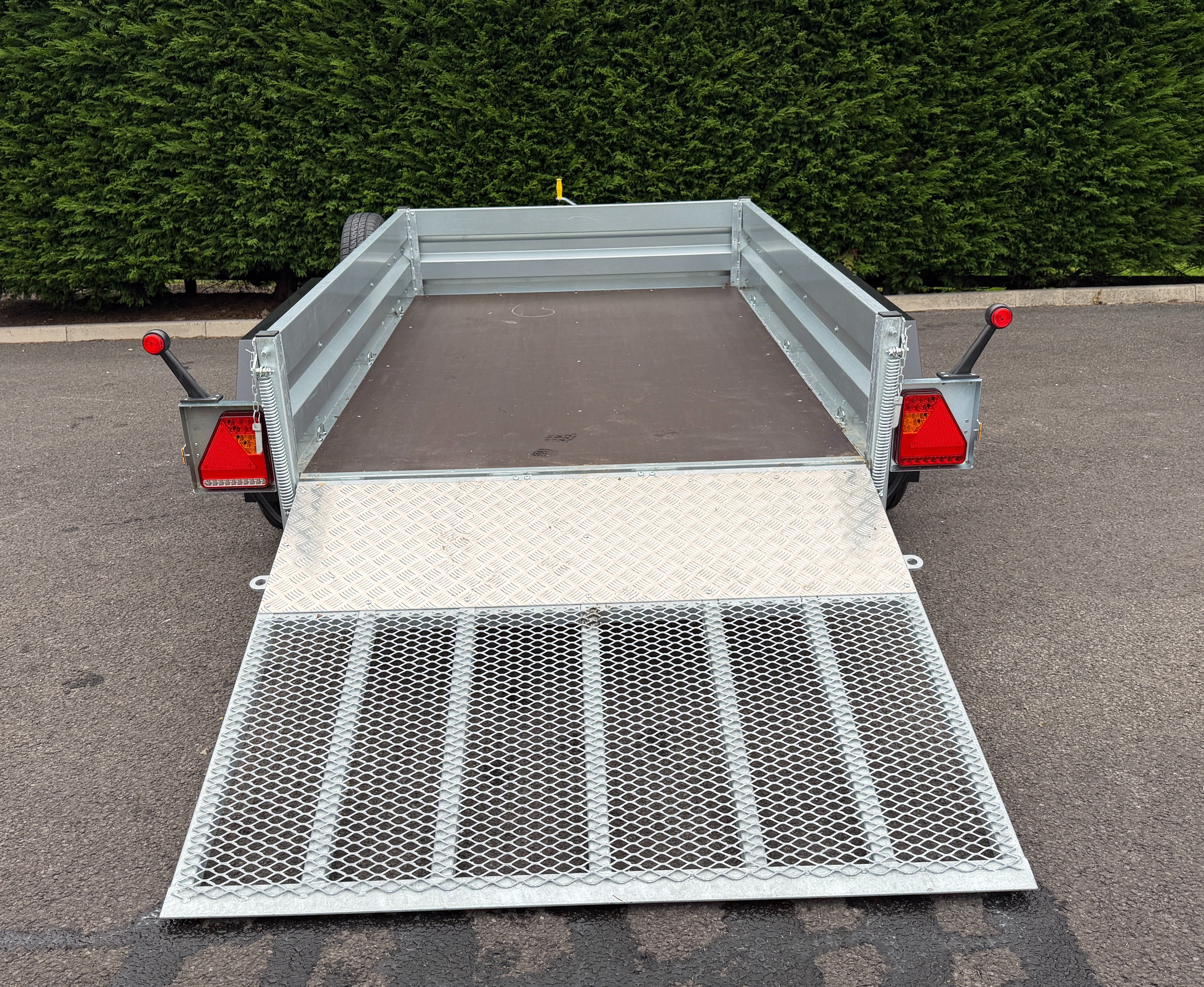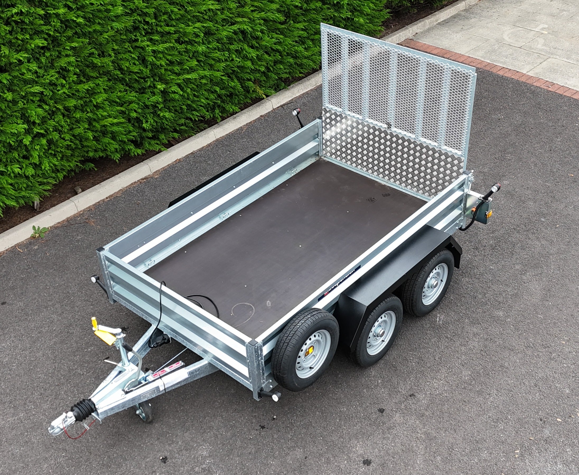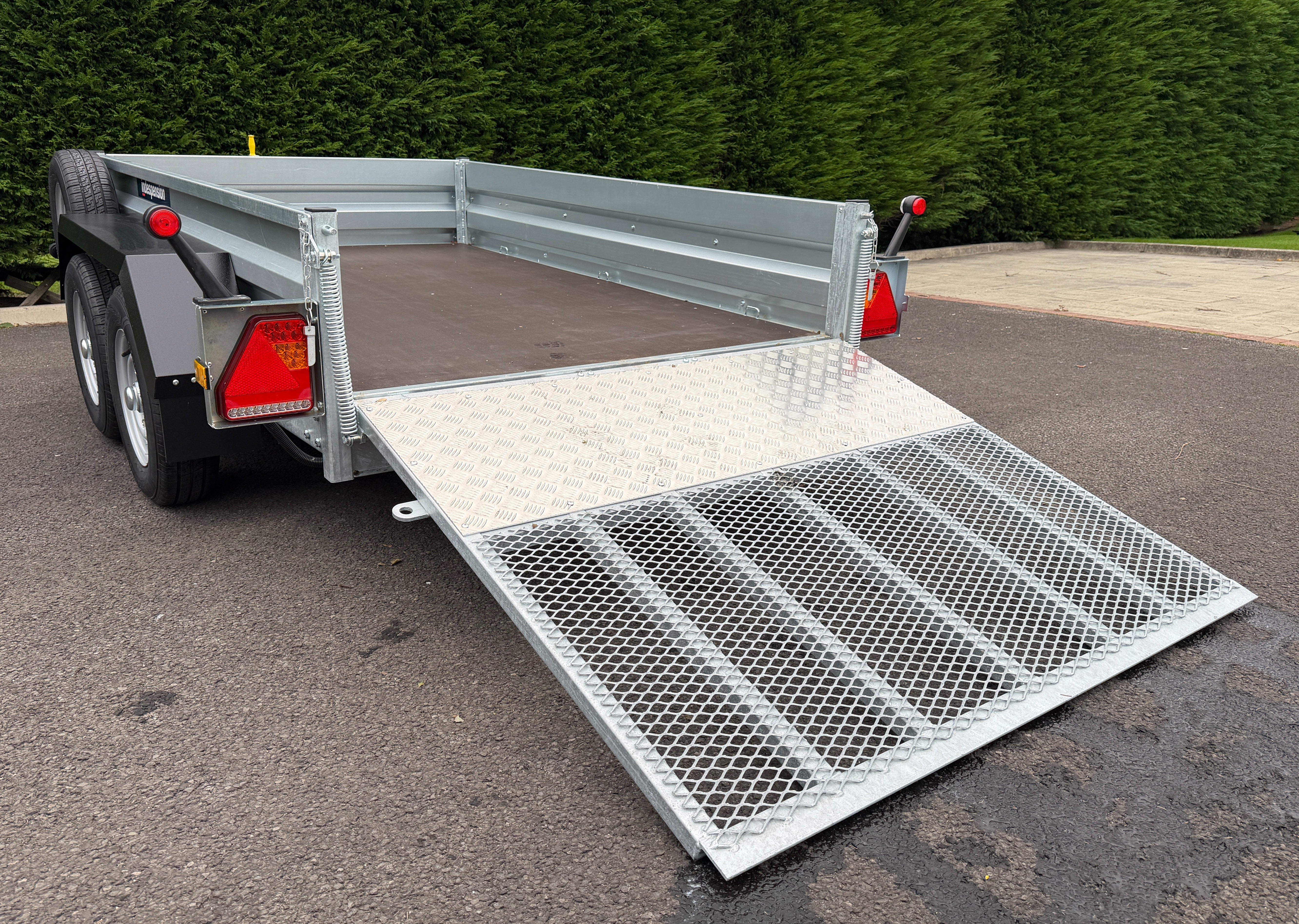 This trailer features a hot-dip galvanised steel chassis, crafted to ensure a rigid and sturdy design. Profiled galvanised pressed steel sides and box section corner posts further enhance its structural integrity.