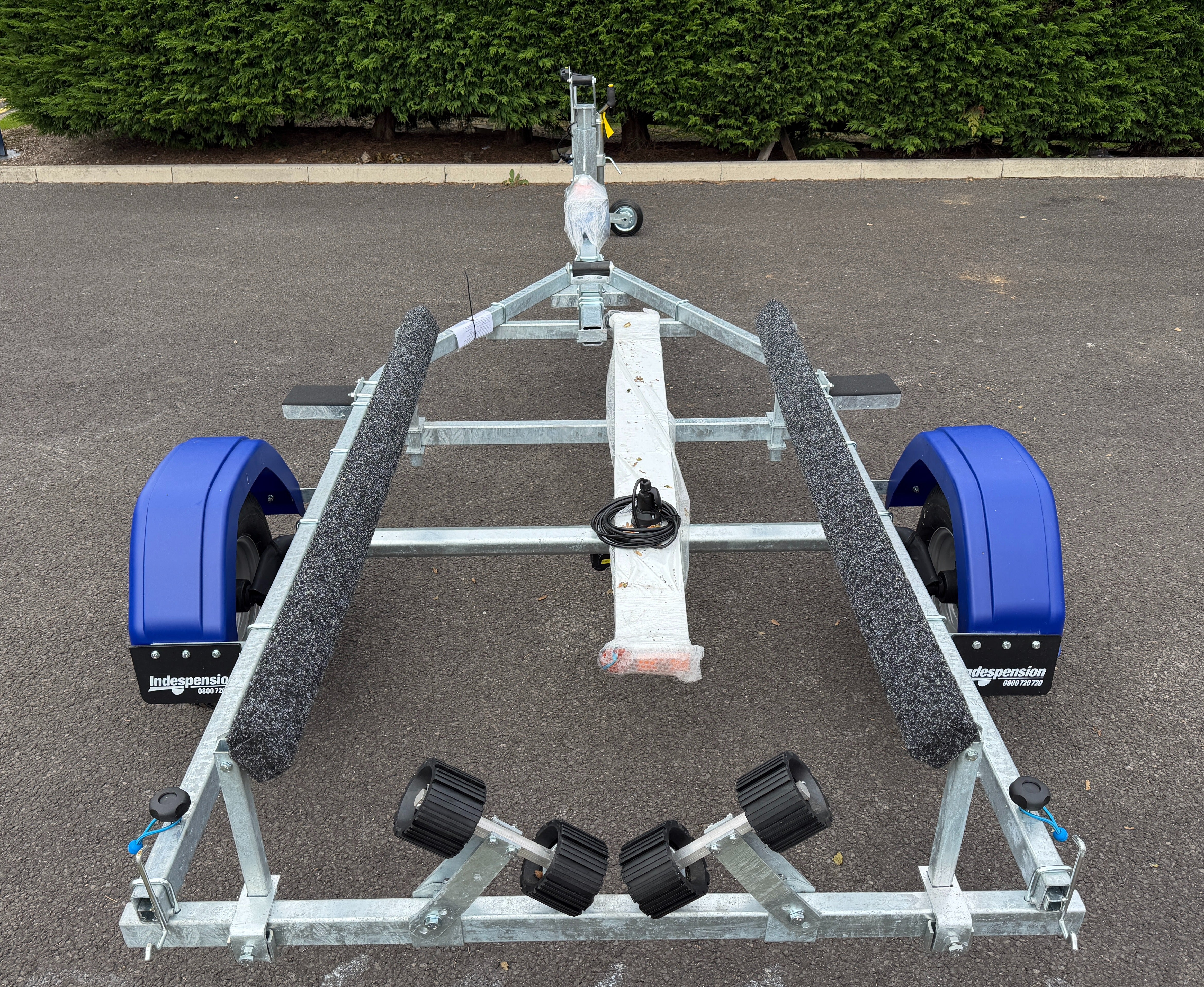 It's bunks are adjustable in height and width and are covered in soft but tough rubber to provide maximum hull support. It is also fitted with a fully adjustable Jockey Wheel, which reduces the strain on your back and allows easy manoeuvring.