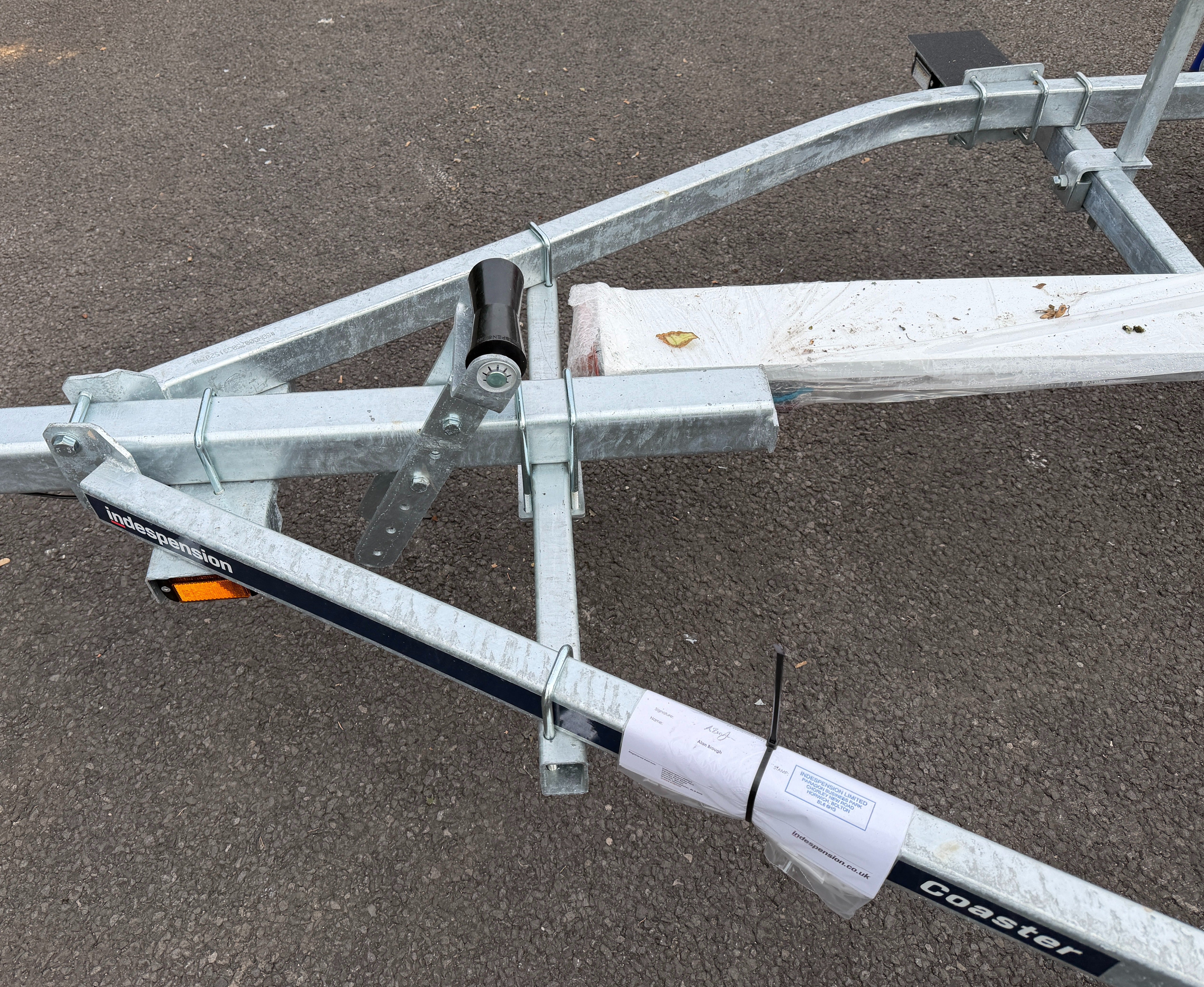 This trailer is an unbraked trailer with a gross weight of 710kgs. The Coaster 5 trailer has an adjustable length capacity to take most boats up to a length of 5m. The Coaster 5 is built with a fully welded and hot dip galvanised chassis for maximum strength and durability, with no rusting.