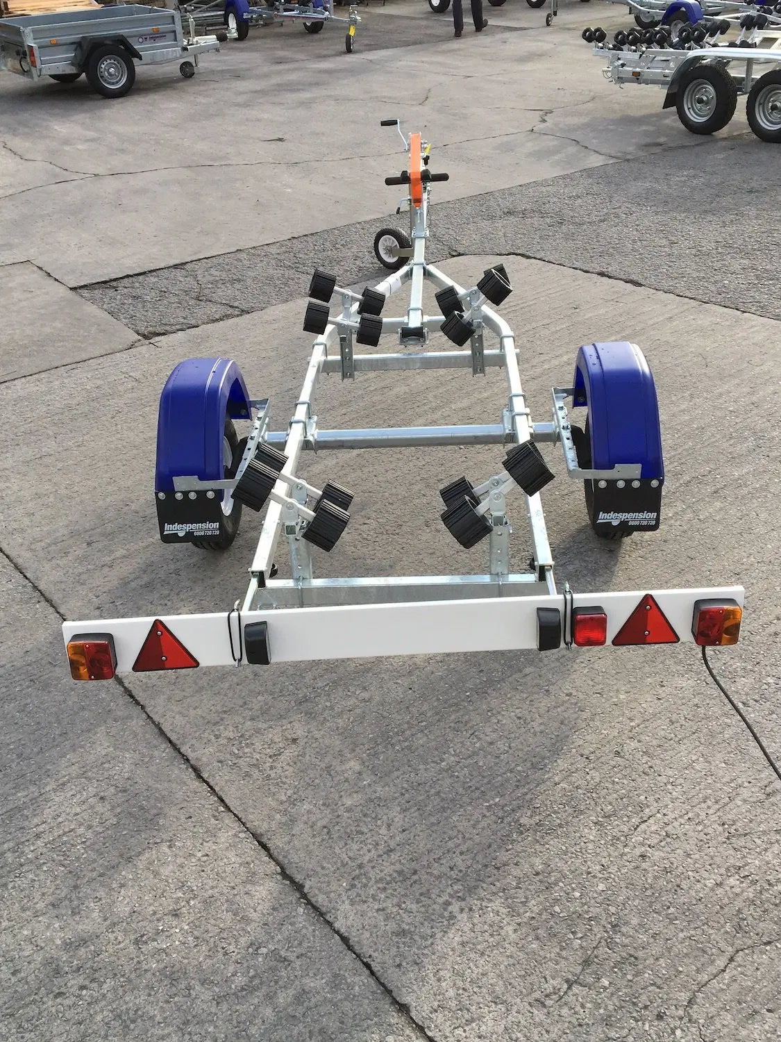 The difference between this trailer and the Coaster Mini, is that this trailer is built with17 adjustable rollers to suit a variety of hull shapes and to provide maximum hull support. Whereas the Coaster Micro is built with bunks.