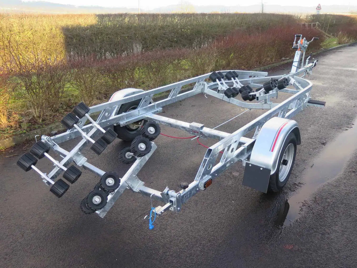 It's bunks are adjustable in height and width and are covered in soft but tough rubber to provide maximum hull support. It is also fitted with a fully adjustable Jockey Wheel, which reduces the strain on your back and allows easy manoeuvring.