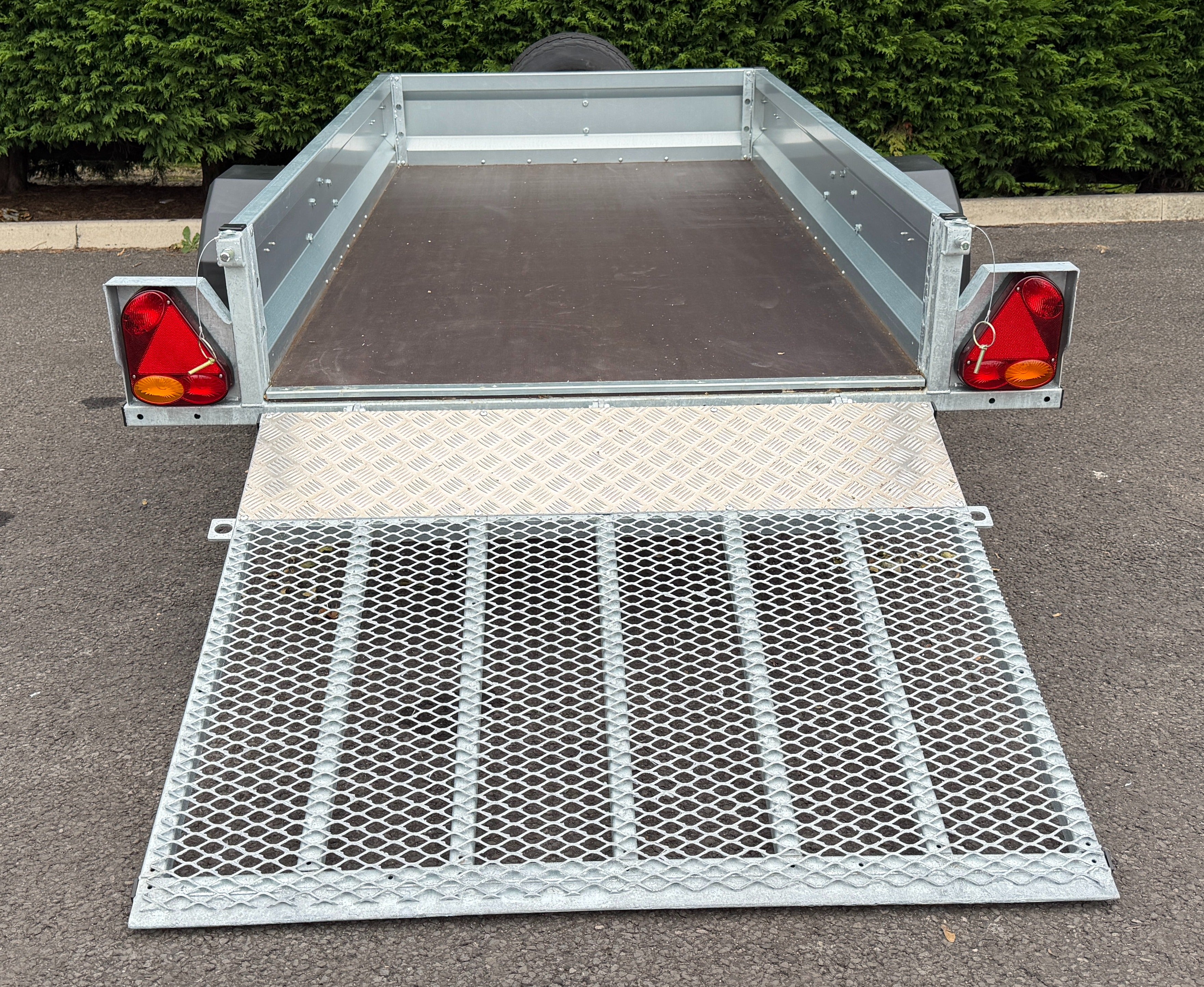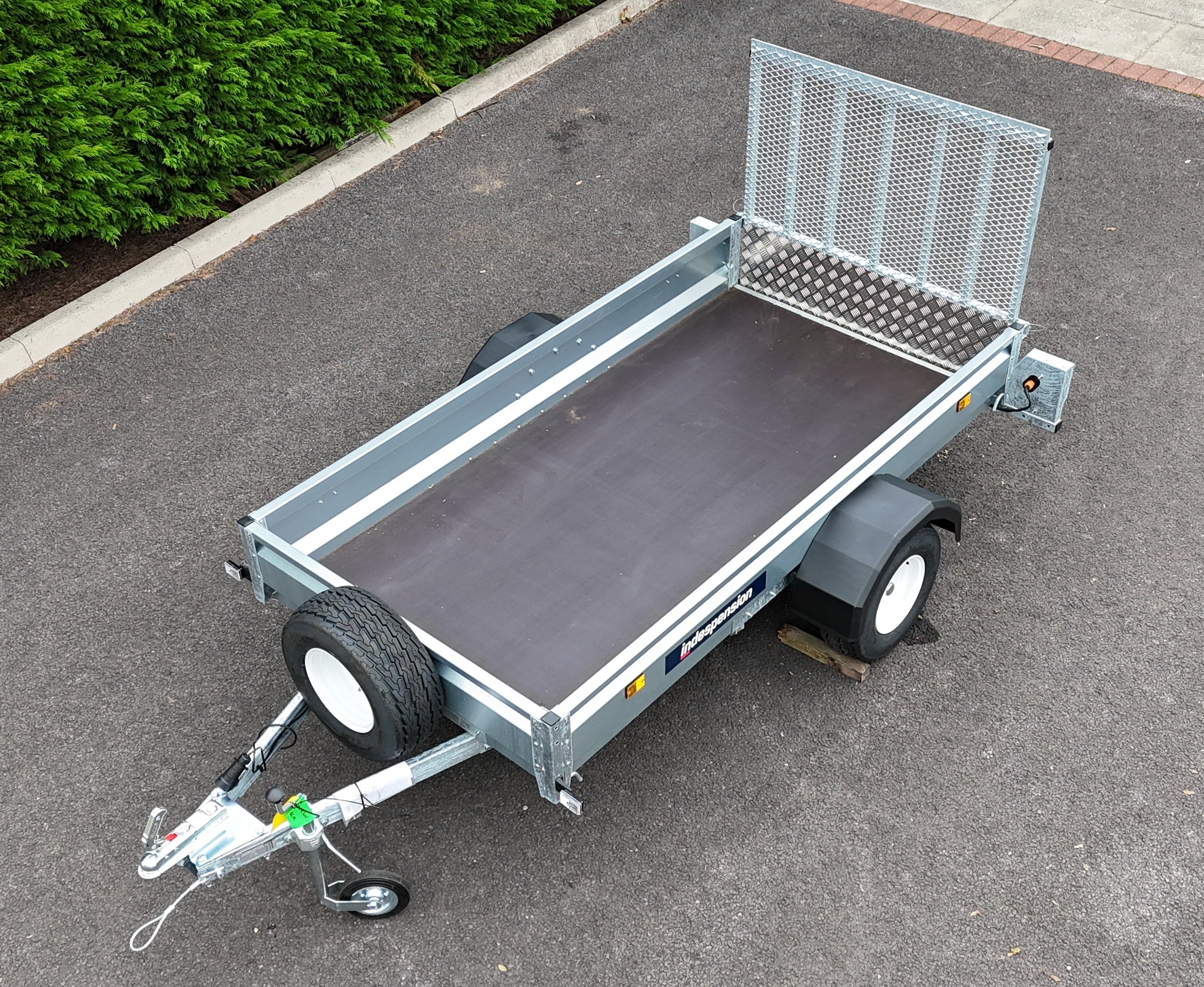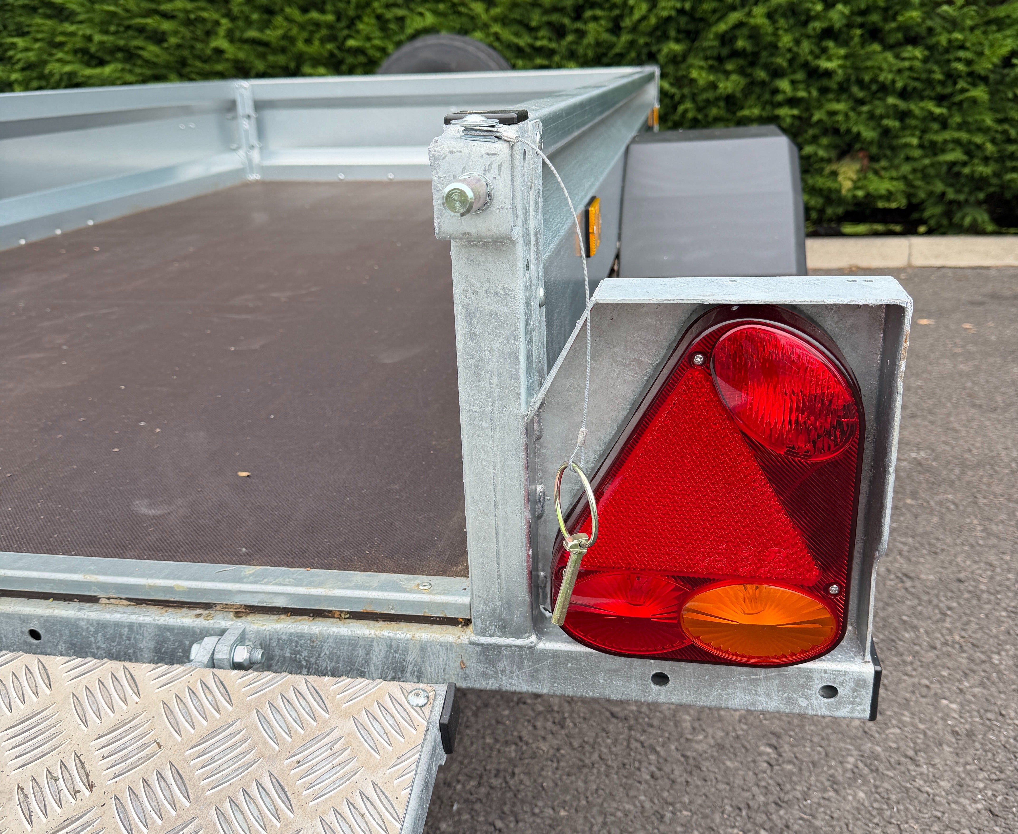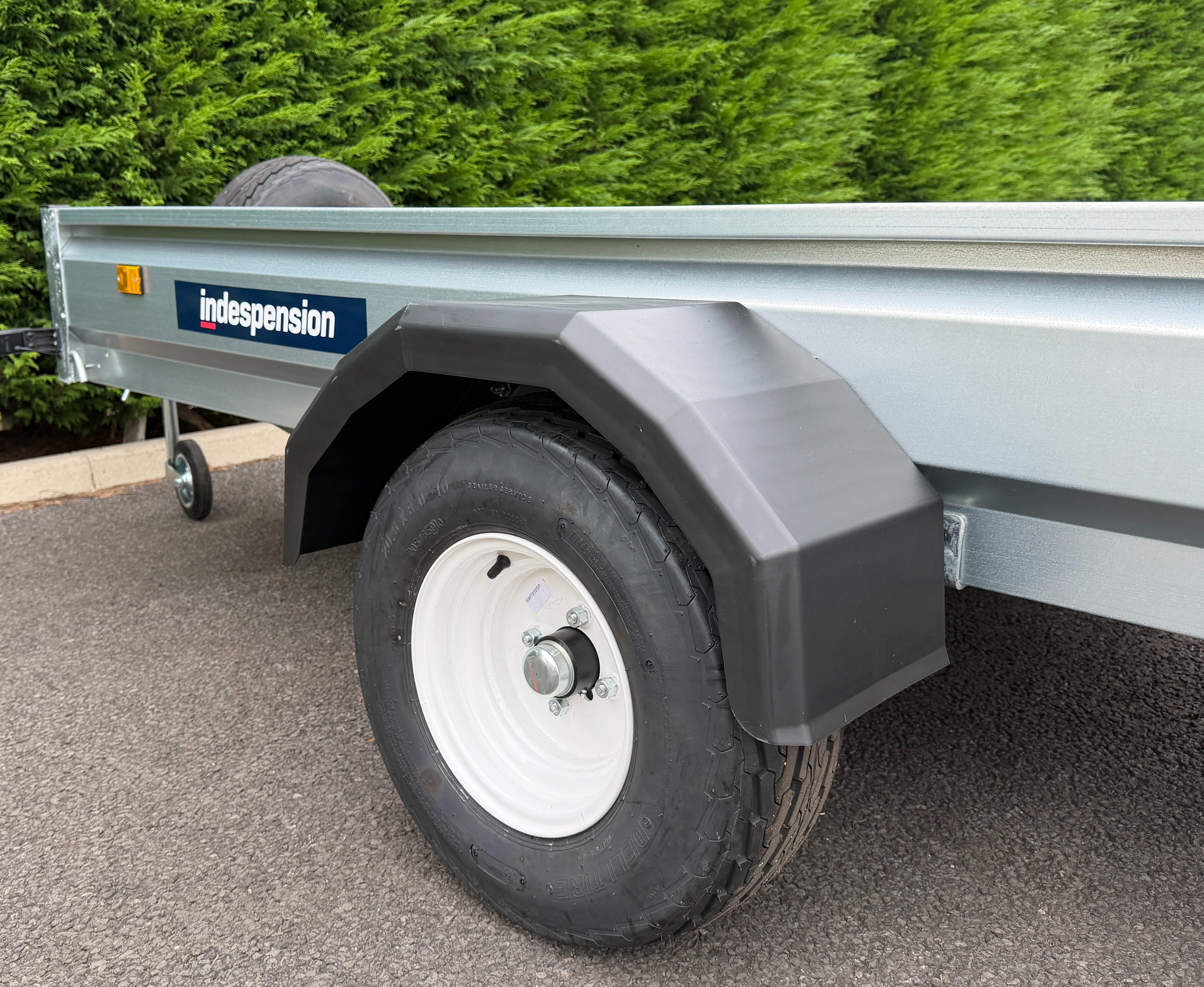 The trailer's body is constructed from pre-galvanised profiled panels and features wide plastic mudguards and box section corner posts for added stability.