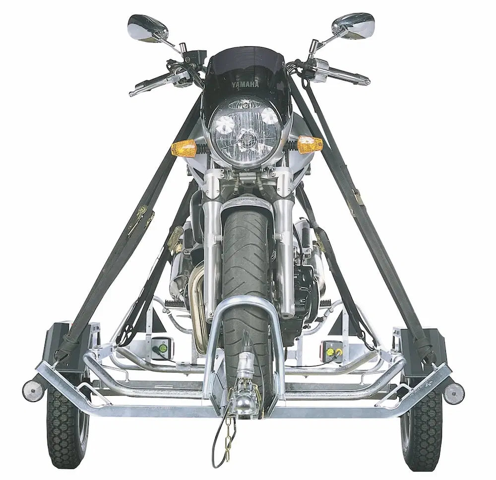 The PM310/1RN is an unbraked, single railed motorcycle trailer. It is constructed of galvanised steel and has a gross vehicel weight of 300Kgs.